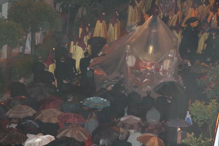 Por cierto, en esas fotos, lástima que nadie se acercara al Museu de la Setmana Santa entre las 22:15 y 24:00 del Viernes Santo para inmortalizar el esperpento en que se convirtió en una especie de camarote de los Hermanos Marx versión La Pasión con las dudas de si salir a morir procesionando (o no) en medio del diluvio universal, pasos entrando derrapando, otros goteando, un balcón, Dios que nos habla, que sí, que no, que caiga un chaparrón, un romano que pasa, una hermana comiendo raïm, otro secando figuras, empujones, chistes fáciles… emocionante y divertido como la vida misma.