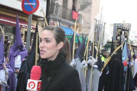 IMAGEN 3: Compañera periodista. Que duro es grabar un speech y errar cienes y cienes de veces ante la presión de la mirada de miles de nazarenos que te rodean, ríen tus errores y ante una carxofa que no sabe si abrirse o no.