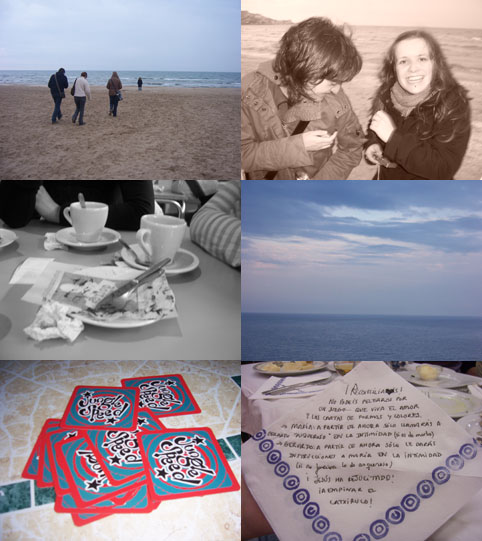 Dormí poco el domingo (poco más de cuatro horitas), levántate a las 08:30 al encuentro, encuéntrate, empujones, corneta, almuerzo, Convent amunt, Convent abaix, comida en la hermandad, discurso del abuelete doloroso, mínimo descanso, pressing catch, hacia Cullera, paseo, gofres, playa, lluvia, jungle speed, vuelta a Torrent, busca lugar donde cenar, cena divertida y amorosa, botellón en casa de los Conejeros, programa televisivo de cuyo nombre no quiero acordarme, más jungle… son las tres de la mañana… yo creo que ya toca…