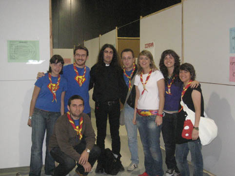 NOTA PARA LOS LECTORES: Este post debiera haberse publicado el lunes (cuando pensaba que por la tarde tenía tiempo de sobra en la Fundació para escribirlo y resulta que estaba chapada) y bajo el título de «El dia de los frikis mutantes» por nuestras peripecias el sábado en la Trobada d’Educadors Juniors (conocimos al genuíno y rockero Padre Jonni como muestra la foto), la mía propia en la inauguración del Centre Comarcal Dona Emprenedora y el final de la fiesta del sábado en pleno diluvio universal cantando canciones de Oasis con unos italianos. Pero no, la historia del «Expediente Encarnita» (nombre con el que hemos bautizado mi Santa y yo a mi ligue friki) ha ganado en peso a los demás. Que los otros blogueros os cuenten las otras historias.