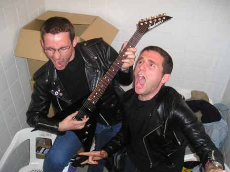 Anoche, organizando todos mis cd’s tirados por las estanterías del ordenador recuperé esta peaso de foto de Salva y Xavi con las chupas robadas del White Wolf Festival’04. Ese macroevento heavy que, bajo la influencia de Javi, Lobo y Tino, nos dio als Comilitons por organizar dos años consecutivos sacar pasta y reirnos un rato con los peludos con el increíble resultado, respectivamente, de -30 euros y 10 euros de ganancias pese a las cerca de 400 personas por WWF.