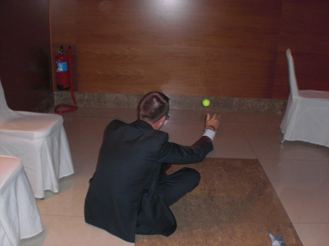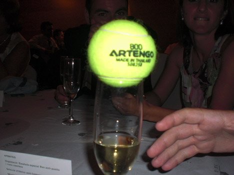 Pero era tan tentador… yo ahí mirando… y el novio vestido de tenista soportando el bochorno… pelotitas amarillas cayendo por todos los lados… y una que pasa rozándome… ahí, al alcance de mi mano… y esa pared… qué pared… cuántas tardes pasamos jugando a la pared en Monte-Sión… siempre pensé que las paredes del patio estaban hechas con la única misión de albergar decenas de competiciones… yo no quería… pero no pude resistirme… cogerla y lanzarla contra la pared… jugar dos puntitos de ná… total, el banquete ya estaba en pleno jolgorio… y los padres de mi Santa me ríen las gracias… era tan evidente hacer también una breve imitación de Steve McQueen en «La gran evasión»… yo no quería… pero no pude evitarlo…