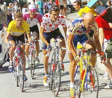 1. GRANDISIMA FOTO con pantani endureciendo,virenque aprovechandose del trabajo de los demas y ullrich aguantando la montaña con un gran equipo,grandes tardes de verano!!!!!