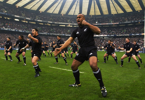 Entre gruñidos, sacando la lengua, grandes pisotones, palmadas en los muslos, pechos hinchados y gestos amenazadores, los All Blacks entonaron su canto que acababa con un enardecedor final: