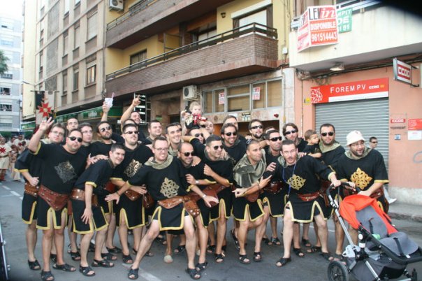 Sustituiremos esa dosis violencia por una pacífica estampa comilitona con esos bárbaros a punto de comerse a alguien y un servidor intentando detenerlos.