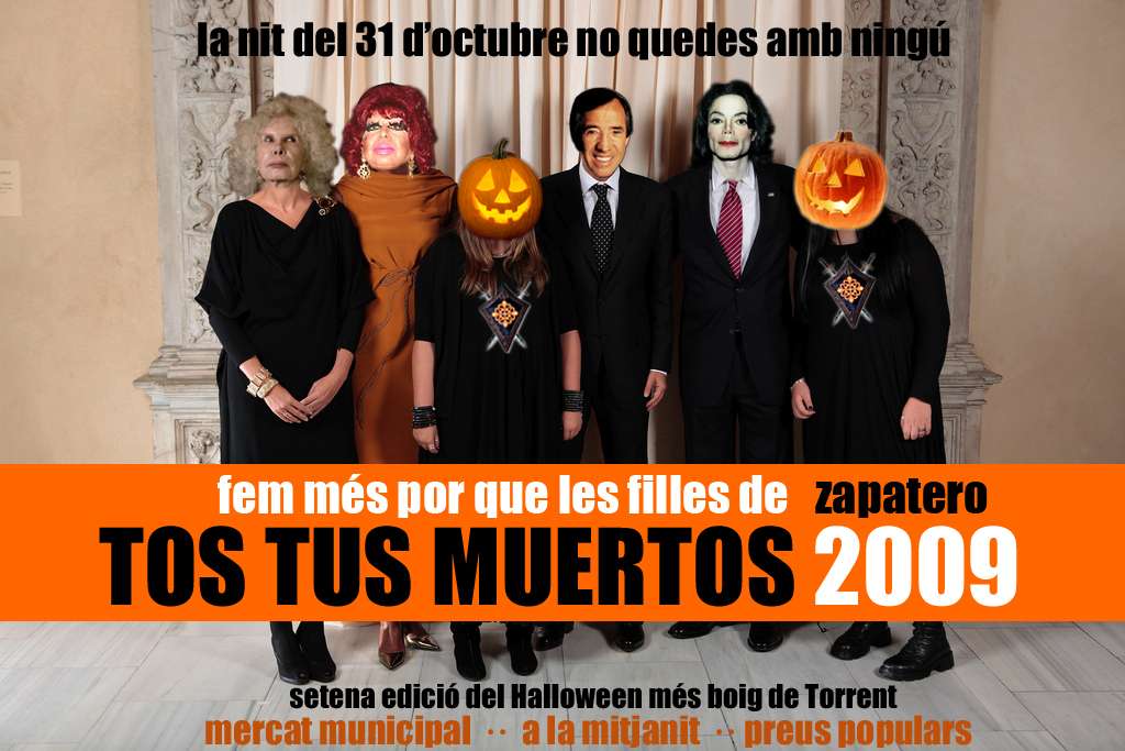 De sobra es conocido que Els Comilitons, a parte de ser una filà de Moros i Cristians de Torrent, tiene tendencia a expresar un personal sentido del humor. En 2009, para celebrar nuestra (antes famosa) fiesta del Tos Tus Muertos, nuestro particular anti-Halloween humorístico, no tuvimos otra ocurrencia que tomar la estricta actualidad para ilustrar nuestro cartel anunciador.